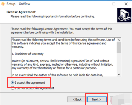 2、接下來(lái),選中下圖中"I accept the agreement"這個(gè)單選,然后繼續(xù)點(diǎn)擊“Next”。