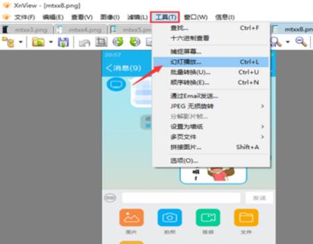 1. 首先我們要打開(kāi)xnview這個(gè)軟件,然后在工具欄中找到“工具”,在“工具”里面會(huì)有“幻燈播放”功能,點(diǎn)擊它。