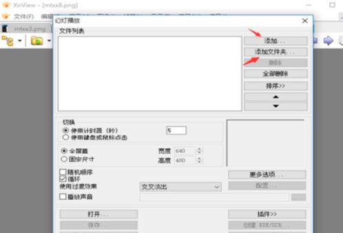 2.接下來(lái),在彈出的界面中,我們來(lái)添加或添加文件夾來(lái)向xnview里面添加一些圖片,看下圖所示中的箭頭指向。