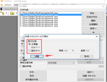 5.在彈出的創(chuàng)建EXE/SCR幻燈播放功能中,我們可以自己選擇顯示區(qū)域,選擇好以后點(diǎn)擊”創(chuàng)建“。