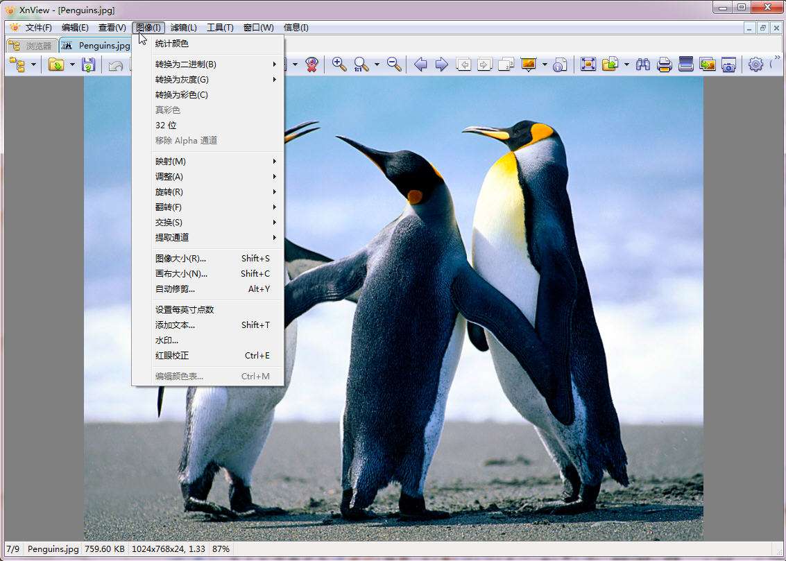 2.打開(kāi)選擇好的圖片以后,我們需要點(diǎn)擊xnview工具欄上的“圖像”標(biāo)簽,然后在彈出的列表中選擇“添加文本”
