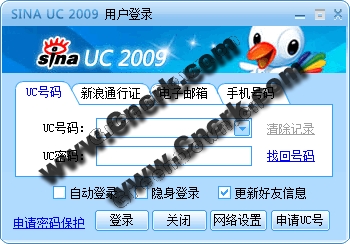 新浪UC是國內(nèi)較早投入研發(fā)的即時通訊軟件。新浪UC一直秉承創(chuàng)新的理念,不斷推陳出新。新浪UC集傳統(tǒng)即時通信軟件功能于一體,融合P2P思想的新一代開放式網(wǎng)絡即時通信娛樂軟件,將有聲有色、圖文并茂的場景聊天模式,以及視頻電話、可斷點續(xù)傳的文件傳輸、能夠多人聊天的多人世界,消息群發(fā)功能和在線游戲功能以及同學錄(團體)等有機結(jié)合,形成一個完整的網(wǎng)上即時通訊娛樂平臺,滿足人們?nèi)粘9ぷ骱蜕畹男枰o大家?guī)磉呎f、邊看、邊玩的網(wǎng)絡生活全新感覺。********* UC2009 正式版 *********