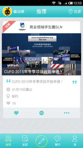 小醬油是一款面向于大學(xué)生的活動(dòng)分享平臺(tái),目前已經(jīng)覆蓋北京所有高校。小醬油一直以讓用戶獲取最大價(jià)值為宗旨,力求為用戶提供最全、最快、最準(zhǔn)的活動(dòng)資訊。想去外校蹭講座?就來小醬油