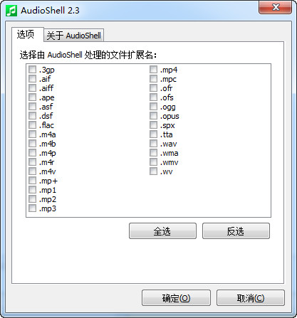 AudioShell支持的音樂格式也非常多,像是MP3、WMA、ASF、WMV、MPG、M4A、M4P、MP4、OGG、FLAC、MPC、MP+、monkey's audio、WAV等等,幾乎常見的格式都包括了。