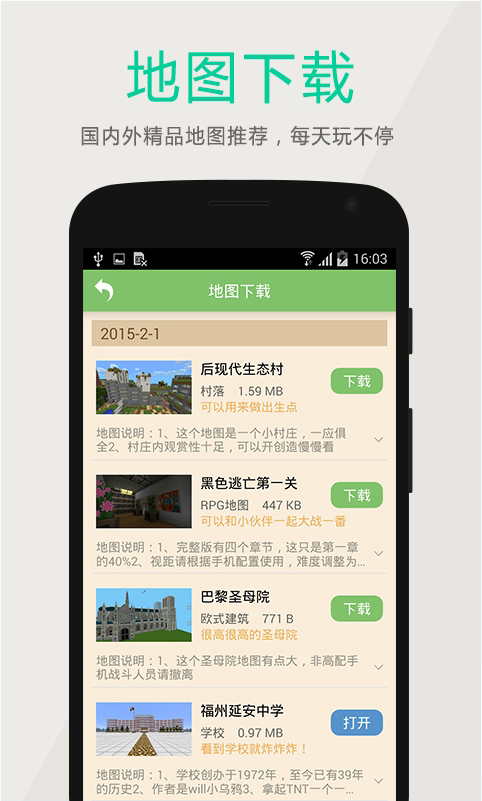 4、地圖管理中,你可以導(dǎo)入導(dǎo)出地圖,下載每日推薦地圖,備份地圖等: