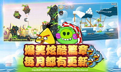 《憤怒的小鳥(niǎo)嘉年華版》內(nèi)含14大主題篇章,300多精彩關(guān)卡。它不僅給鳥(niǎo)迷們提供超多數(shù)量的全新篇章,還傾心奉上超級(jí)有趣的“唐裝春節(jié)”、“豬戲嫦娥“、“NBA灌籃番外篇”和“特別關(guān)卡”,讓你high翻天!