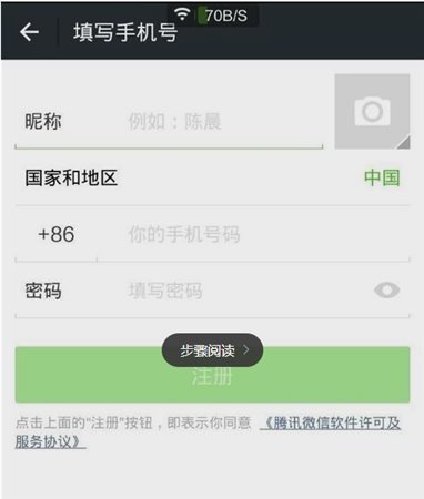 3、然后就是點(diǎn)擊注冊(cè),會(huì)彈出一個(gè)注冊(cè)填入你的微信昵稱(chēng),手機(jī)號(hào)碼和密碼!注意,每個(gè)手機(jī)號(hào)只能注冊(cè)一次哦!現(xiàn)在就只有手機(jī)注冊(cè)的方式,用郵箱和QQ都不能注冊(cè)登入了。
