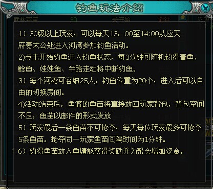 13:00-14:00 釣魚(yú)活動(dòng)(魚(yú)是要搶的,當(dāng)然我只搶我自己小號(hào)的,不喜歡被罵),現(xiàn)在出了跨服釣魚(yú),釣魚(yú)經(jīng)驗(yàn)是一樣的,搶魚(yú)經(jīng)驗(yàn)可是雙倍的,不妨在最后