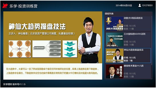 樂(lè)學(xué)理財(cái)是通過(guò)線上提供授課,針對(duì)理財(cái)投資進(jìn)行培訓(xùn)提供理財(cái)方法和專(zhuān)業(yè)技術(shù),擁有眾多理財(cái)界名家、學(xué)者、業(yè)內(nèi)人士、民間高手,通過(guò)全面的課程設(shè)置來(lái)滿(mǎn)足用戶(hù)需求。