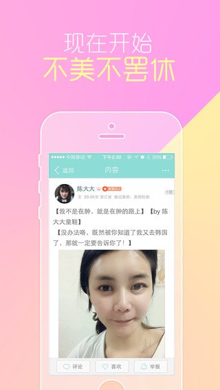 5、社交:有共同的變美目標(biāo),加入整形圈子,來扒扒整形那點事兒,一起變美!