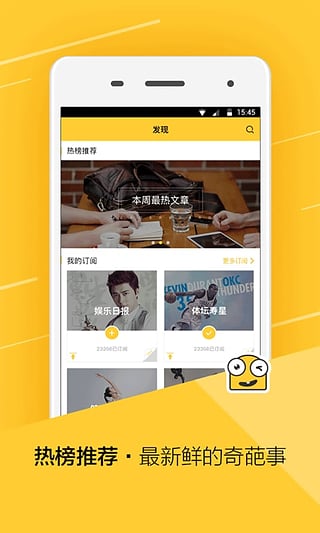 1.數(shù)萬大V公眾號(hào),隨意訂閱分組,再也不用為點(diǎn)擊小紅點(diǎn)發(fā)愁了。2.聚合社交媒體病毒式內(nèi)容,一部手機(jī)上的全民分享寶典。