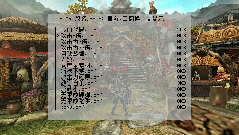 斷開(kāi)USB連接,在PSP上隨便進(jìn)入一個(gè)游戲,金手指就激活了,按音符鍵“♪”可呼出金手指。
