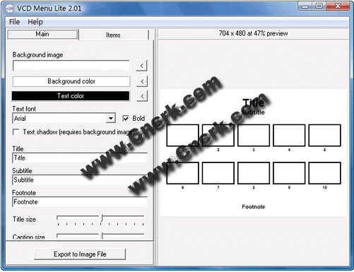VCD Menu Lite 允許你創(chuàng)建簡(jiǎn)單但吸引人的作為你的 VCD / SVCD 電影和幻燈片演示的開頭的菜單.你可以定制該菜單的顏色并且可以通過從視頻幀(avi 或者 mpeg 文件)或者圖像導(dǎo)入的方式添加章節(jié)縮略圖.設(shè)計(jì)結(jié)果可以被導(dǎo)出為可以被導(dǎo)入到你的 VCD 創(chuàng)作軟件的 JPG 圖像. VCD Menu Lite 讓你僅僅可以設(shè)計(jì)菜單,不可以用來創(chuàng)建 VCD,或者生成 MPEG 輸出.既然該軟件輸出菜單為標(biāo)準(zhǔn)的 JPG 圖像,該軟件還可以被用于其它用途(圖像映像等等).