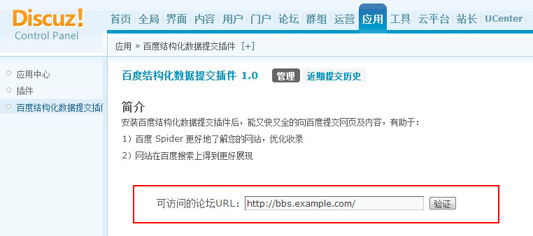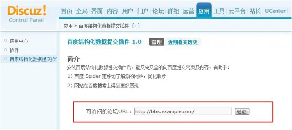 步驟五:啟用百度結(jié)構(gòu)化數(shù)據(jù)插件后,驗證對應(yīng)的論壇地址。如下圖: