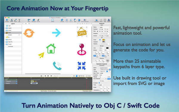 大大節(jié)省時(shí)間。創(chuàng)建繪圖和動(dòng)畫,并實(shí)時(shí)獲取目標(biāo) C 或 Swift 代碼。-創(chuàng)建矢量繪圖使用提供工具或使用現(xiàn)有的資產(chǎn),從 SVG 或圖像。