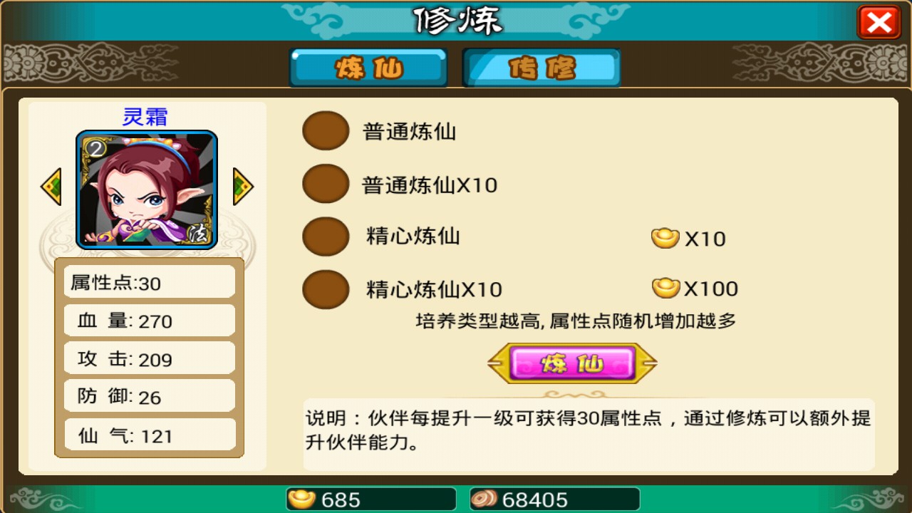 3、一路上必須收復(fù)各路妖魔,并將妖魔收為自己的徒兒,妖魔的魂魄可以互相融合從而提升靈力。