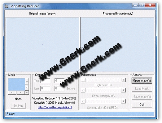 Vignetting Reducer 可以幫助你從照片清除或者減輕通常由于鏡頭的機械屬性,錯誤地排列濾鏡或者遮罩附加裝置而造成的虛光效果。該軟件使用一個采用了使用相同鏡頭,濾鏡和遮罩導致原始虛光效果的正確背景的第二張圖片覆蓋的處理過程。然后你可以載入第二張圖像作為一個遮罩并且進一步挑戰(zhàn)效果和亮度直到虛光效果被減輕或者清除。使用該軟件可以獲得非常好的效果,但是會覆蓋掉一些效果