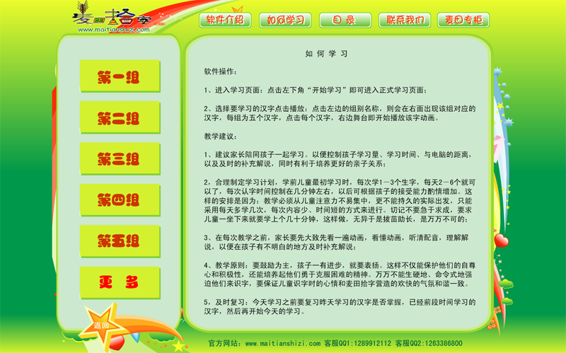 1、麥田拾字軟件由一張軟件安裝光盤+一個加密鎖+光盤盒組成;2、軟件內(nèi)容為1000個基礎(chǔ)漢字的識字動畫,分為200組,每組5個漢字動畫;