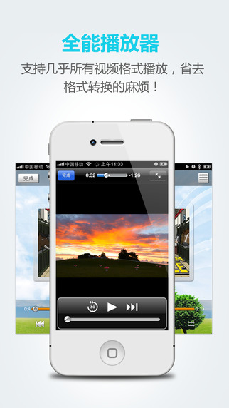 把電腦上收藏的視頻保存在手機里隨時播放,文件全能王可以支持avi、flv、rmvb、mpeg等幾乎所有視頻格式,無須轉碼