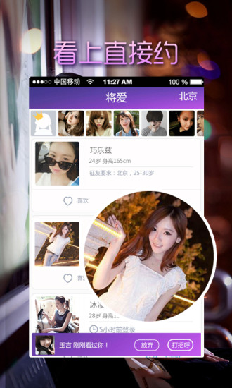 找人陪app是一款比陌陌更加火熱的交友應(yīng)用軟件。在這里你可以快速找到和自己眼緣的同城異性,互相了解并加深印象,從而幫助你快速脫離單身狗一族。