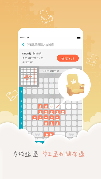 手機(jī)購票訂座——省去煩惱的排隊(duì)購票時間;超值票價——全國700多家影院票價低至4折,更多會員搶票活動;