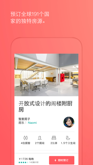 在34,000多個(gè)城市發(fā)掘數(shù)十萬個(gè)房源。直接在iPhone、iPad或iPod touch上預(yù)訂獨(dú)一無二的房源,或找到可供出租的房間。