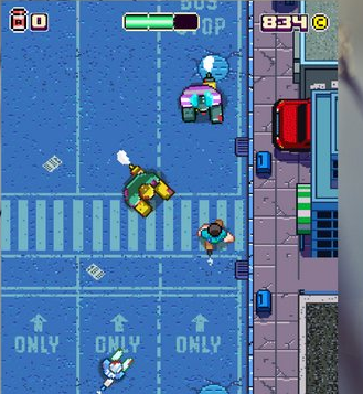 這是一款看上去再平常不過的像素游戲,并不那么美好的畫面效果,與紅白機(jī)時期的街頭系列游戲十分相像。不過,當(dāng)你了解了玩法就會明白為什么會是這種畫面。玩家需要用手指拖動快遞大叔,躲避四面八方襲來的僵尸,游戲節(jié)奏非??欤斓轿覀兏静粫P(guān)心畫面這個問題。在觸感體驗(yàn)上,游戲并不能很準(zhǔn)確的將玩家所想表達(dá)的意思傳遞到實(shí)際的畫面中,我們的手指經(jīng)常會與感應(yīng)位置有一段距離,讓人比較蛋疼。