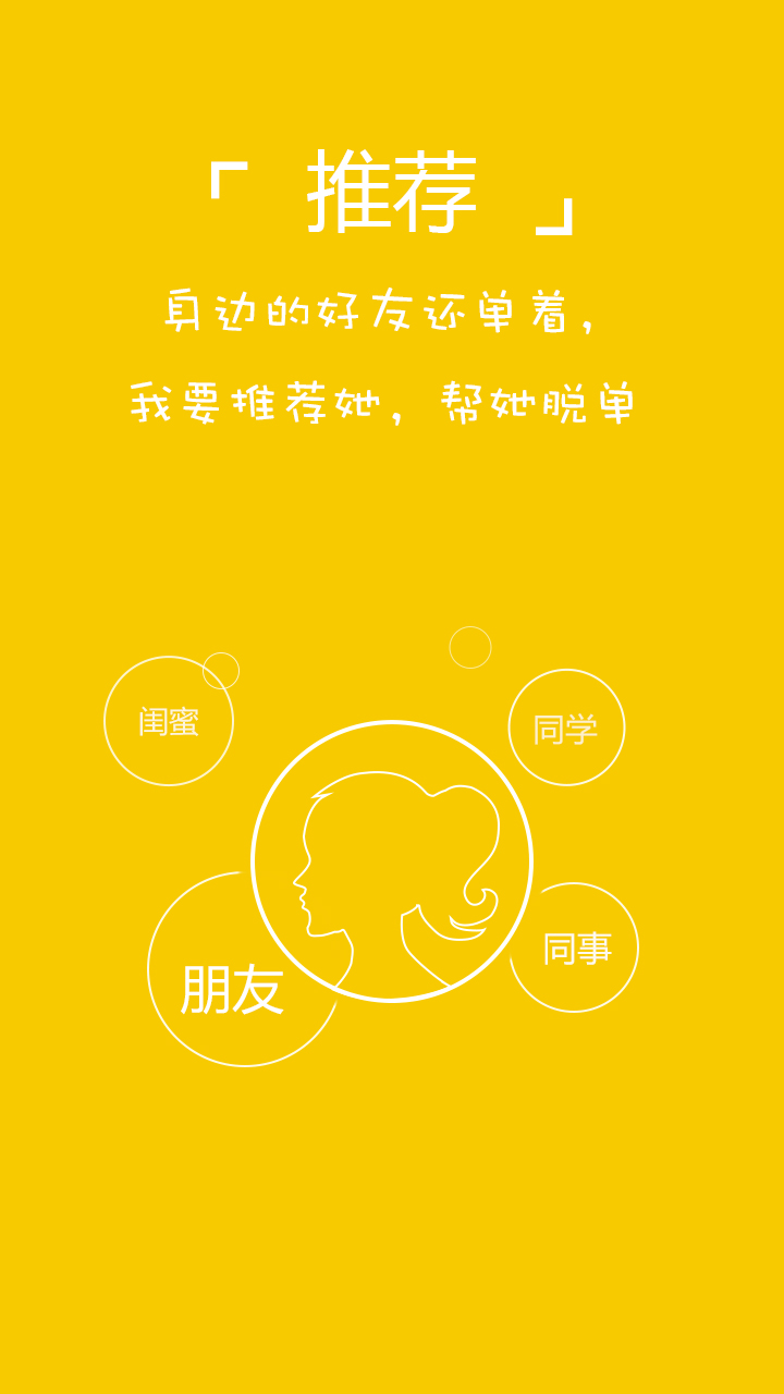「找到ta」是一款通過熟人找對象的APP,通過二度人脈交友模式,找熟人介紹或?qū)ふ沂烊送扑]的相親對象~ . 我們經(jīng)常有這樣的經(jīng)驗,很多事情都是經(jīng)過朋友介紹來完成,既然講關(guān)系走人情辦事能夠很好利用“朋友的朋友”,為什么約會就不可以呢?據(jù)統(tǒng)計,80%的約會對象來自于朋友的朋友。 「找到ta」幫助你找到經(jīng)過朋友們核實(shí)過相對安全的、值得信任的約會對象,同時熱心的“紅娘們”還可以用紅娘的身份,幫助身邊的單身好友牽線搭橋,使她們早日脫單!
