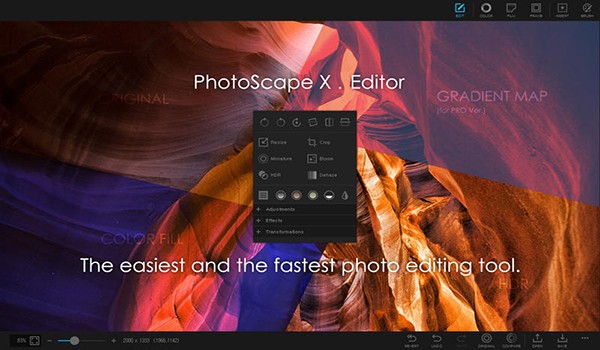 Photoscape中最先進(jìn)的元素之一是其罕見的界面設(shè)計。該應(yīng)用程序非常引人注目,并且在很多方面它比Photoshop更容易。