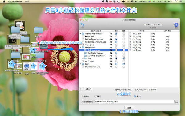 1、拖拽或添加文件&文件夾到App,并勾選要分類的文件和文件夾