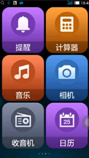 1. 不僅僅是桌面,還包括智愛特色的電話本、短信、計(jì)算器、提醒、日歷、音樂播放器,從細(xì)節(jié)關(guān)愛爸媽。2. 三倍視界¬¬──大圖標(biāo)、大字體、大色塊,爸媽不戴老花鏡也能看得清。
