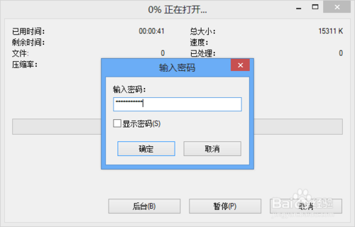 壓縮包加密成功后,打開壓縮包時要輸入正確的密碼才能找開,如圖所示: