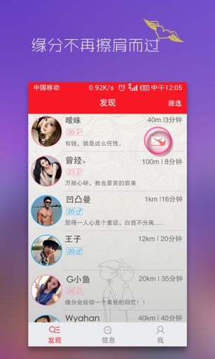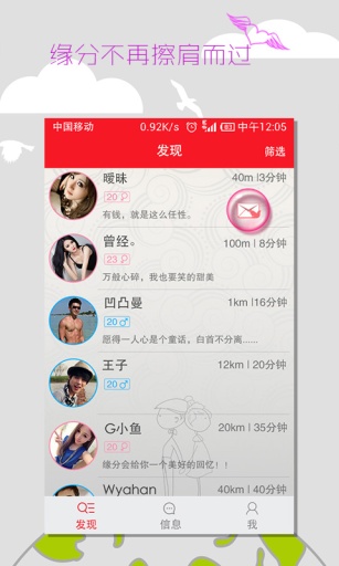 偶然是一款專注于附近陌生人約會,同城交友,戀愛,婚戀的社交平臺,可以免費(fèi)發(fā)送信息,語音,圖片,信封和位置,以全新的方式實(shí)現(xiàn)人與人之間的交流。 讓你隨時隨地 想聊就聊