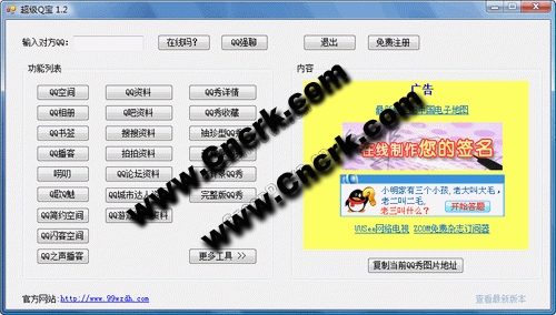 快速查詢指定QQ的在線狀態(tài)、強(qiáng)聊QQ、QQ資料、拍拍資料、搜搜資料、QQ論壇資料、QQ游戲論壇資料、Q吧資料、QQ城市達(dá)人資料、QQ空間音樂、快速打開指定QQ的QQ空間、QQ相冊(cè)、QQ書簽、QQ之聲播客、Q歌Q魅、QQ閃客空間、QQ音樂主頁、QQ播客,同時(shí)還能查詢指定QQ的袖珍型QQ秀、無背景QQ秀、有背景QQ秀等,并且一鍵復(fù)制QQ秀圖片網(wǎng)址。