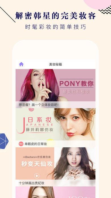 美妝相機(jī)iOS版將你的立體妝效完美呈現(xiàn)!美妝相機(jī)使用國(guó)際頂尖的人臉識(shí)別技術(shù),通過(guò)對(duì)五官的3D精準(zhǔn)定位,讓你的時(shí)尚妝容更立體、更貼合、更自然!分分鐘教你學(xué)會(huì)精致妝容!美妝秘籍匯聚了超多專業(yè)美妝師,分享超多實(shí)用的美妝小技巧,定期更新,簡(jiǎn)單實(shí)用,一看就會(huì)哦!