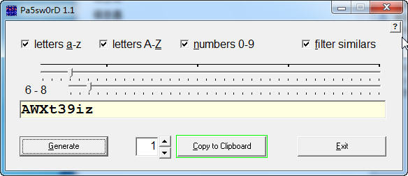 7、數(shù)字代表產(chǎn)生密碼的個數(shù),如果大于1,上方不顯示,只能生成后點擊“copytoclipboard”拷貝到剪貼板;