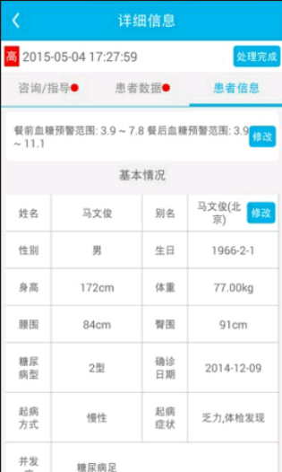 預(yù)警咨詢:及時(shí)查看患者血糖預(yù)警和咨詢消息,進(jìn)行健康指導(dǎo)。患者管理:及時(shí)查看患者血糖、血壓、運(yùn)動(dòng)、飲食、服藥數(shù)據(jù)和健康檔案,幫助您便捷的管理患者。