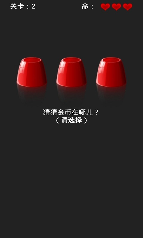 這是一款記憶類的小游戲,游戲中把一個金幣藏在杯子下面,快速的旋轉(zhuǎn)杯子,你能夠猜出來哪個杯子里面有金幣么?都來試試吧