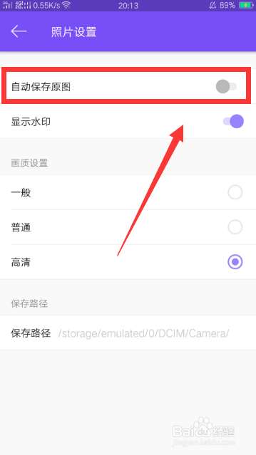 【照片設(shè)置】的頁面,會(huì)顯示自動(dòng)保存原圖沒有開啟。