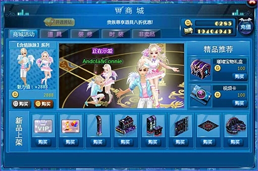 點擊游戲下方的商城圖標,不僅可以購買道具、家具、時裝等,還顯示當前最hot最in的商城活 動及限量限時商品展示。