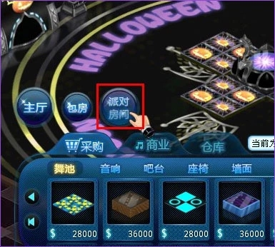 單擊“裝修?派對房間”就可以進入到派對房間里,這里可以自定義風格哦,并且風格只會在派對 顯示。