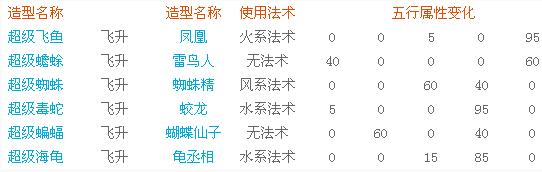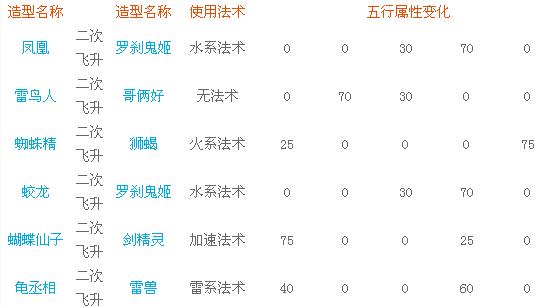 當(dāng)神獸等級(jí)達(dá)到1轉(zhuǎn)100級(jí),玩家的稱謂達(dá)到14稱之后,可以再次找神獸大將對(duì)神獸進(jìn)行二次飛升。這次飛升可以選擇造型是否變化,無(wú)論造型是否變化,飛升后成長(zhǎng)率將增加0.05。二次飛升造型變化對(duì)應(yīng)如下: