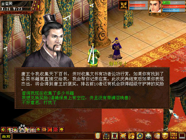 2、殺妖王任務(wù),這是一個(gè)既能練級(jí)(經(jīng)驗(yàn)比常規(guī)任務(wù)多),又能賺錢(100W游戲幣獎(jiǎng)勵(lì))。的玩法(笑)。本來(lái)這個(gè)玩法是很好的,但是妖王沿襲了新大話2的幾率,首先是你不一定能搶到,其次是你搶到了也不一定幾率到。所以個(gè)人不太推薦這種賺錢方式。當(dāng)然如果你有足夠的經(jīng)驗(yàn)跟耐心,那么可能會(huì)是最好的一種賺錢方式,因?yàn)椴恍枰杀?,沒(méi)有每日限制……