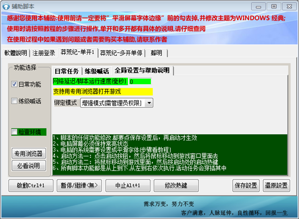 3、啟動腳本:點擊啟動按鈕后迅速將鼠標移動到游戲界面,按回車鍵確定,輔助將自行啟動