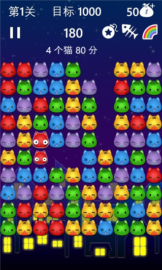 ✓ 同時(shí)消除的同色貓貓?jiān)蕉?,獲得的分?jǐn)?shù)越高.