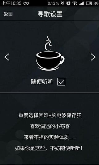 擊音app擁有簡(jiǎn)約界面,大圖標(biāo)設(shè)計(jì)風(fēng)格方便操作,聽覺震撼也講視覺享受。擊音APP,將你的敲擊化作神奇。敲擊三次,搜索歌曲與歌友,百萬在線歌曲瞬間推送,偏好相近歌友即時(shí)推薦。敲擊兩次,收藏歌曲共鳴瞬間,立時(shí)生成音樂日記,記錄聽歌心情,可自動(dòng)同步到常用社交平臺(tái)。
