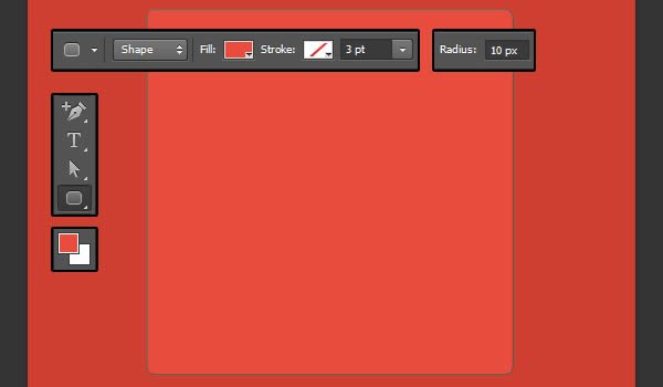 第2步 設(shè)置前景色為#e74c3c,挑圓角矩形工具,選擇形狀在選項(xiàng)選項(xiàng)欄,并設(shè)置半徑為10。