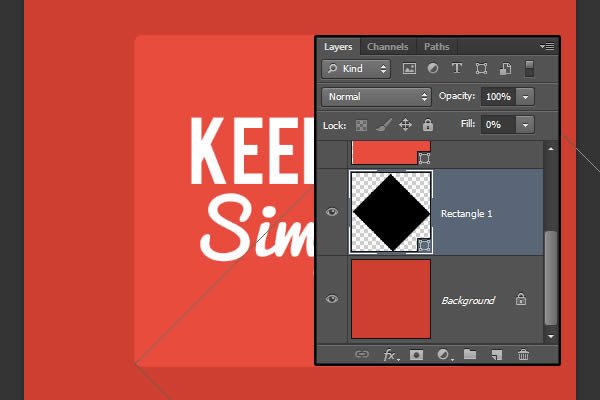 第1步 設(shè)置前景色為黑色,并挑選矩形工具。Shift +單擊并拖動(dòng)以創(chuàng)建覆蓋幾乎整個(gè)背景的矩形。新的形狀圖層應(yīng)放置在右側(cè)的上方背景層。