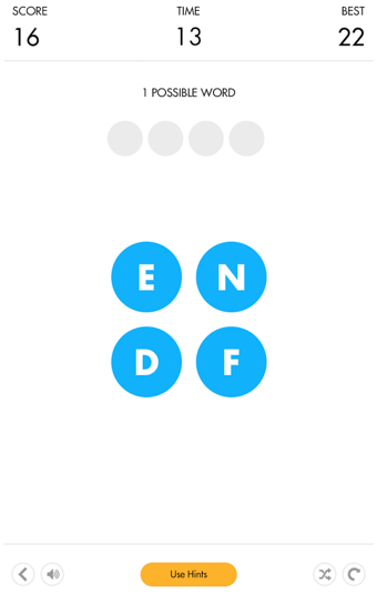 不斷拼出詞匯來(lái)增加你的得分。挑戰(zhàn)也就會(huì)持續(xù)更久。