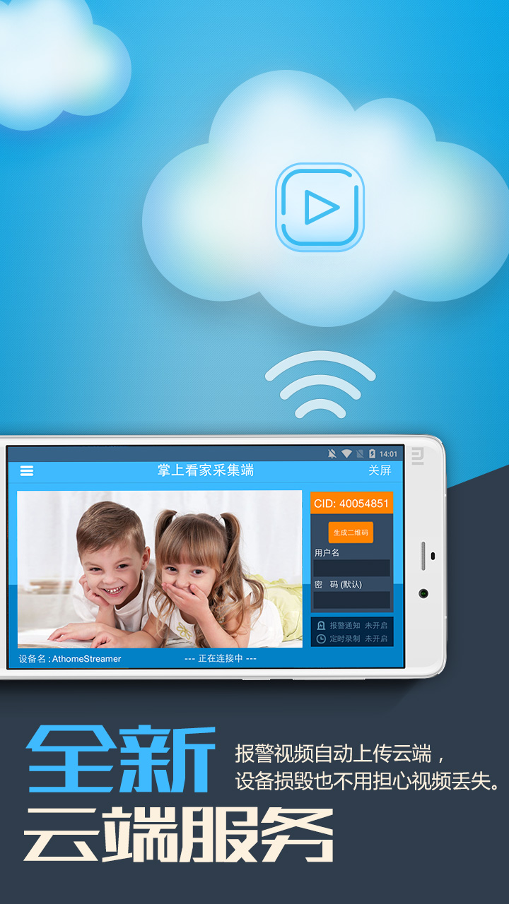 C.“觀看端”注冊登陸后,添加“采集端”的CID號碼、用戶名、密碼連接。也可以通過二維碼掃描添加,兩端一連接,輕輕松松實(shí)現(xiàn)遠(yuǎn)程實(shí)時(shí)監(jiān)控!